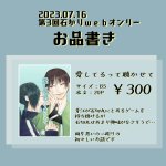 こちらWebオンリーお品書きと サンプル(ツリー)になります🙌 仕事で Twitterのほうは開始1時間と終了前1時間しかいません🥹 11時に頒布開始後は静かになってると思われます😇 エアスケブも何も出来ませんがよろしくお願いします🥹 #石かりwebオンリー202307_お品書き pictsquare.net/tm4dz8eumkrskf…