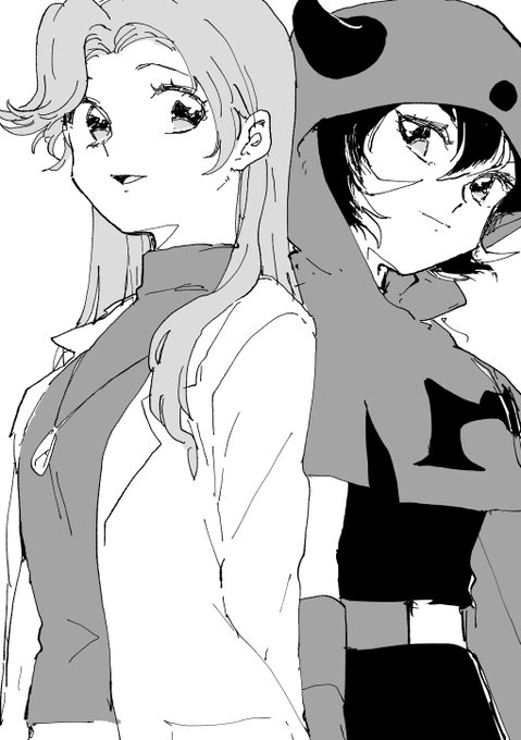 89 473 ナナミさんとカガリさん定期的に描きたくなる。この2人白衣とマグマ団員服で対面することはないんだろうなーと思うとこの格好で並べてるだけで凄く興奮してしまう 23/03/23 23:36
