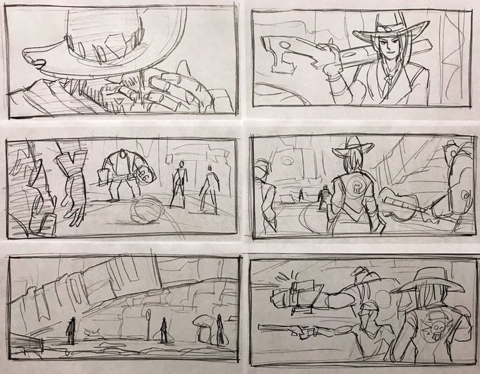 「Establishing shot」エスタブリッシングショット 物語の冒頭などで場所や状況の説明などによく使われる。アクションが始まる直前にキャラクターの位置関係を把握させることで観客の混乱を防げる。 #Overwatch #フィルムスタディー