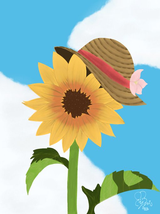 #夏を感じるギャラリー2021 #イラストレーターさんと繋がりたい #イラスト好きな人とつながりたい #夏 向日葵も麦わら帽子です🌻 麦わら帽子むずすぎ👒💦 頑張って描きました! 色々見逃して…(((((