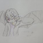 @mofumaru_yu さんのこうもりくん!色塗りした〜!✨ 久しぶりに色鉛筆触ってこんなに色薄いんだ…!と驚いちゃった、 #よその子 #イラスト