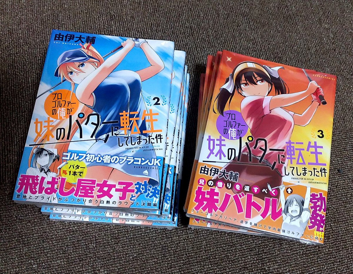 告知です 『プロゴルファーの俺が妹のパターに転生してしまった件』2・3巻が12月15日発売です 兄が転生したパター1本でのゴルフで連戦戦勝のリョーコ、愛しの兄(パター)を賭けたラウンド勝負、そして”妹対決”に挑む!よろしくお願いします! (店舗特典COMIC ZINさま twitter.com/yuidaisuke/sta…