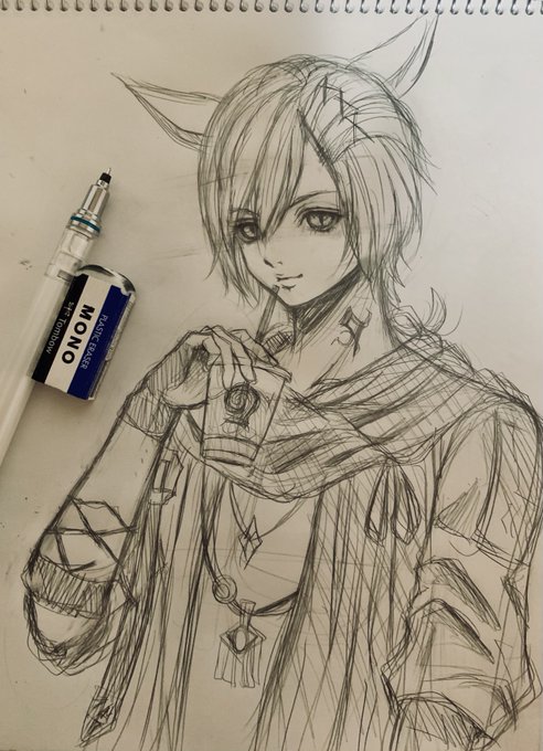5 20 いつぞやの森アトさんにいらっしゃったミコッテさん アルフィノヘアにバトラーアタイアがとっても素敵でした🥰 #森アト絵 #森アト_Ele #FF14art #FF14 22/07/09 22:38