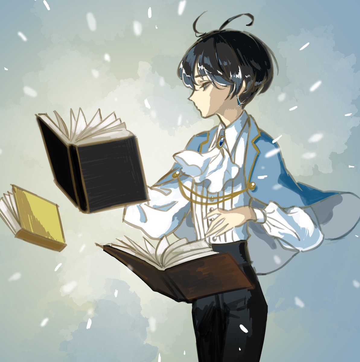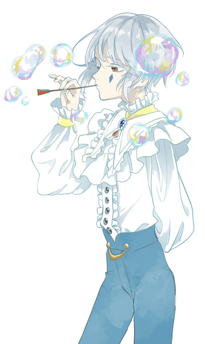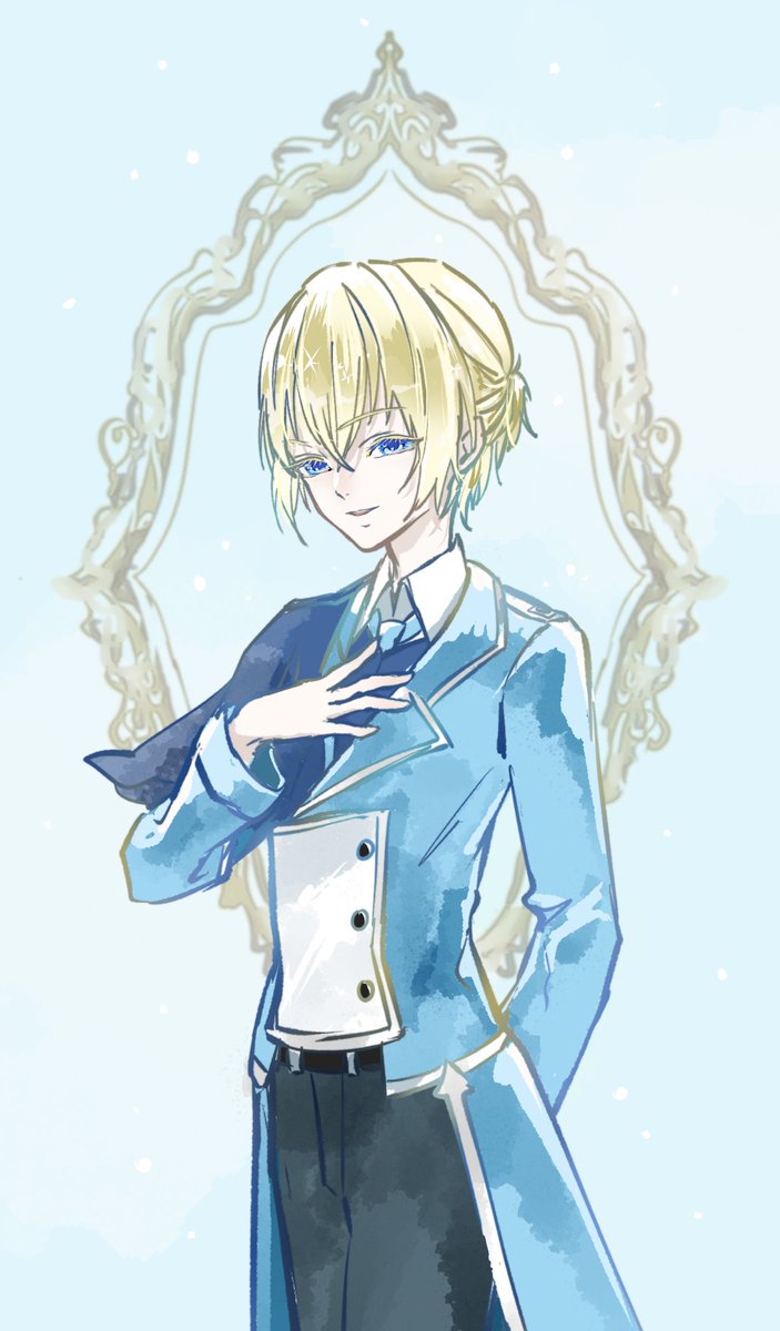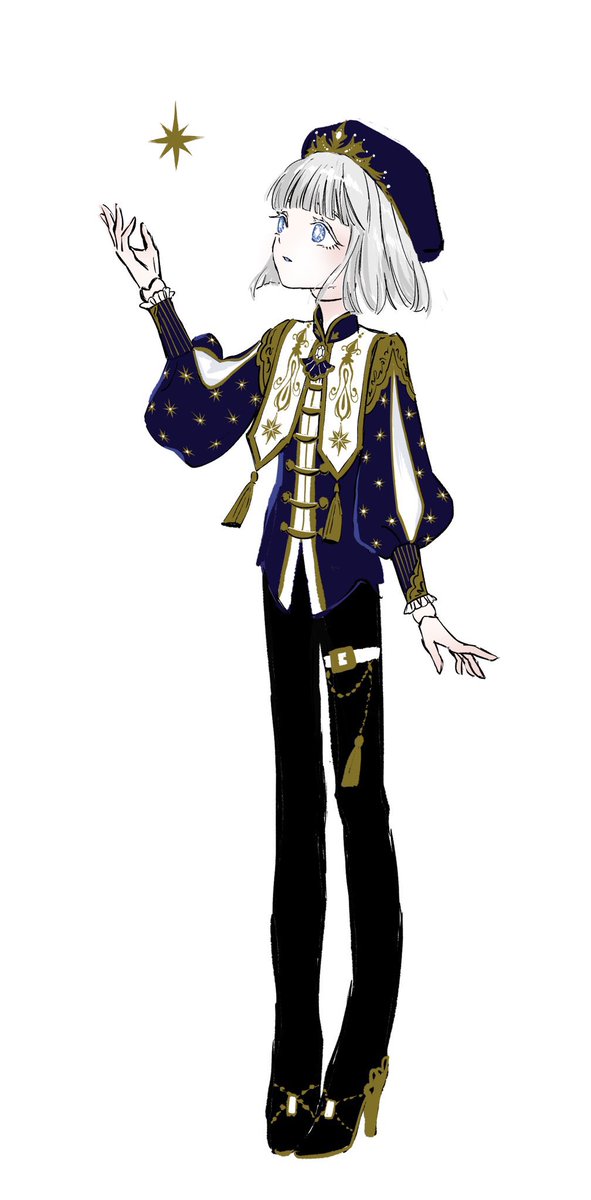 #美少年ワンドロ_うちの子資料 二人目失礼いたします! 動く球体関節人形のメモワールくん(仮称)です 肌の色は白めで目は宝石、口の中と爪は釉薬の青です 基本は天真爛漫で笑顔多めな子です 関節・衣装共に描くたびに変わりがちなので適当で大丈夫です!