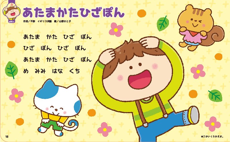 24 79 「おうたいっぱい!たのしいてあそびえほん」(東京書籍) 表紙と本文イラストを描かせて頂きました✨親子で手遊びを楽しめる、音の出るおうた絵本です😊 お見かけの際は、よろしくお願いします💕 18/04/09 18:37