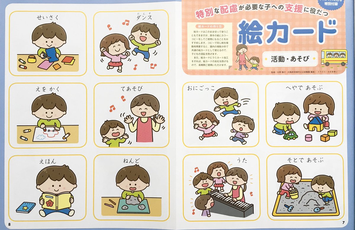 7 33 「PriPri」10月号(世界文化社) 特別付録 「特別な配慮が必要な子への支援に役立つ絵カード」のイラストを描かせて頂きました✨ 今月は「活動・遊び」のイラストです😊 18/09/07 12:27