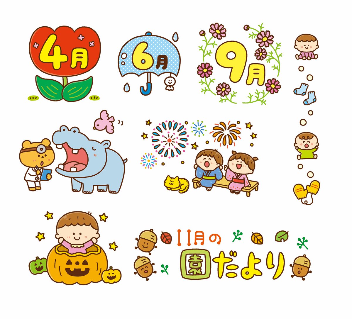 「決定版 おたより文例&イラストカット集」(ナツメ社) 130点ほどイラストを描かせて頂きました✨ 使える文例&イラストが満載!CD-ROM付きでおたよりがラクラク作れます🥰