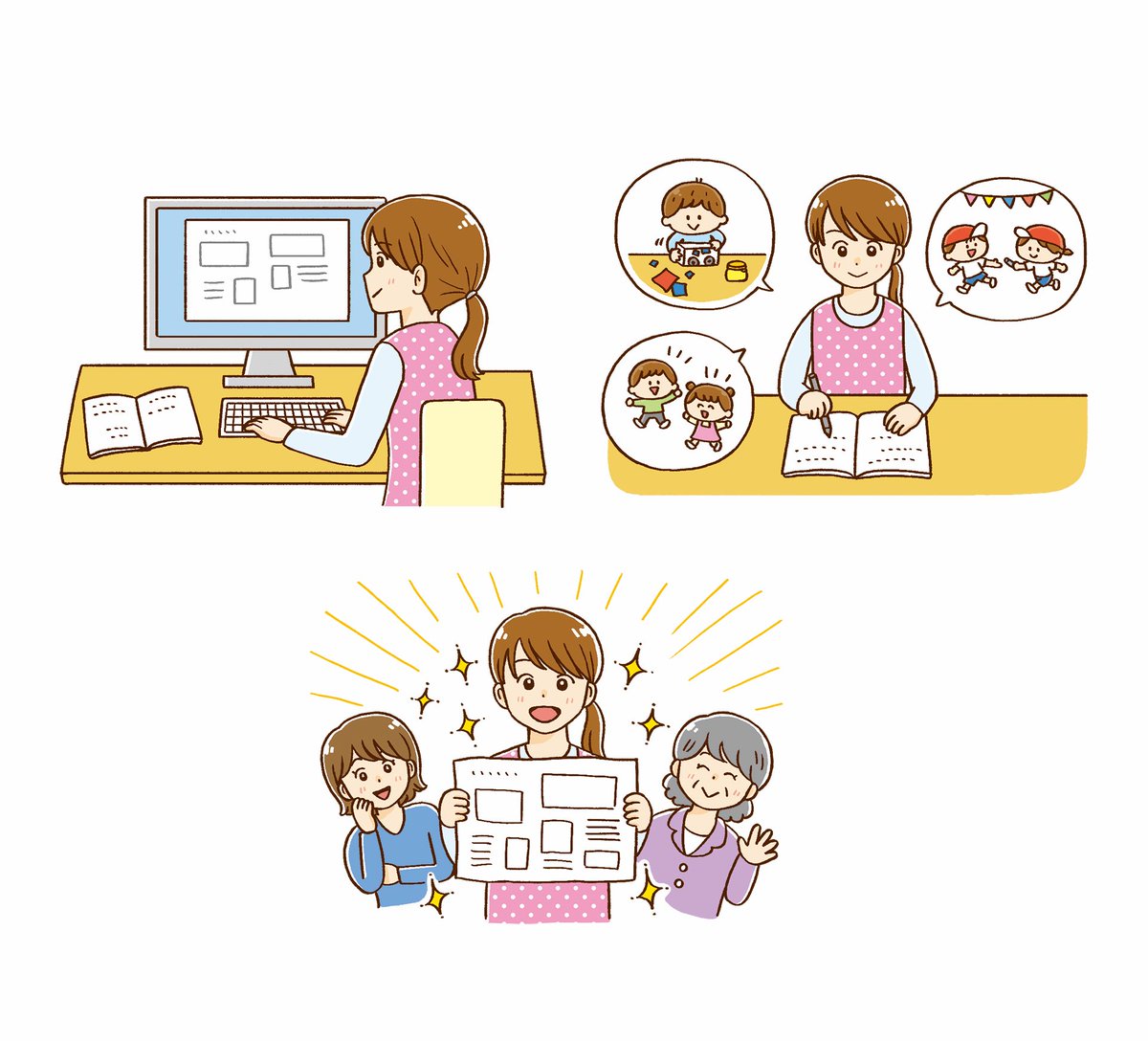 POTブックス 0・1・2歳児の連絡帳 選べる書き方&文例集(チャイルド本社) 表紙イラストを描かせて頂きました✨ 連絡帳の書き方の基本やポイントを紹介し、保護者や子どもの姿に添った返信文例とすぐに使える日常の文例がたっぷり掲載されています✏️