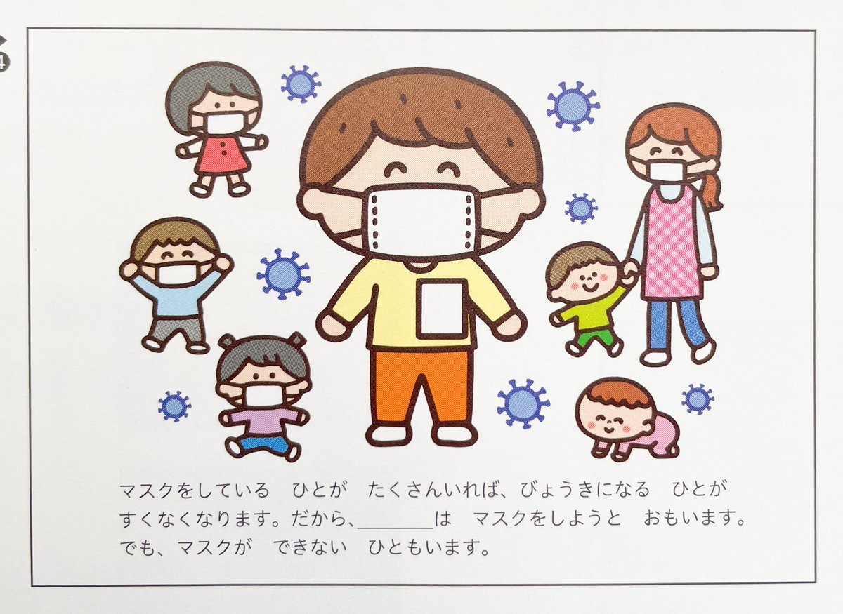 「発達支援 PriPriパレット」4・5月号(世界文化社) 新型コロナ対策とマスク保育特集「マスク説明ストーリー絵本」のイラストを描かせて頂きました✨ 巻末にはこちらのイラストをコピーして作る絵本の作り方も掲載されています✨