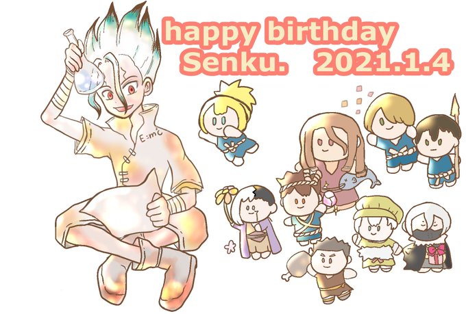 53 220 #石神千空誕生祭2021 千空ちゃん!お誕生日おめでとう🎉🎉🎊 君のことが大好きだよ!体に気をつけて(ほんとに たくさんのものに唆られてね。 本日新刊、1/14アニメ二期楽しみすぎ💜 21/01/04 07:59