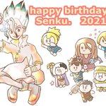 #石神千空誕生祭2021 千空ちゃん!お誕生日おめでとう🎉🎉🎊 君のことが大好きだよ!体に気をつけて(ほんとに たくさんのものに唆られてね。 本日新刊、1/14アニメ二期楽しみすぎ💜