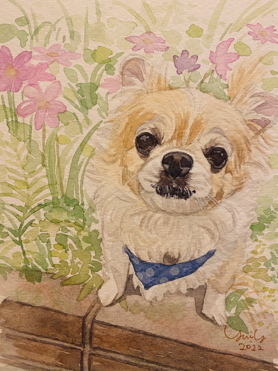 #お絵描き #水彩画 #チワワ