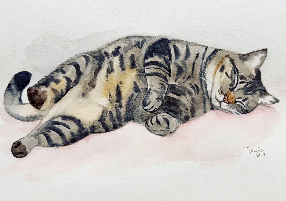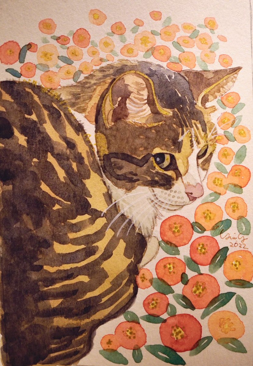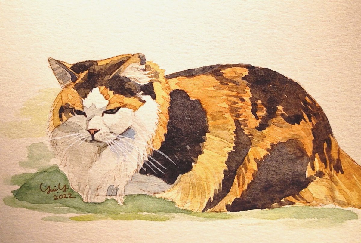 #猫 #お絵描き #水彩画