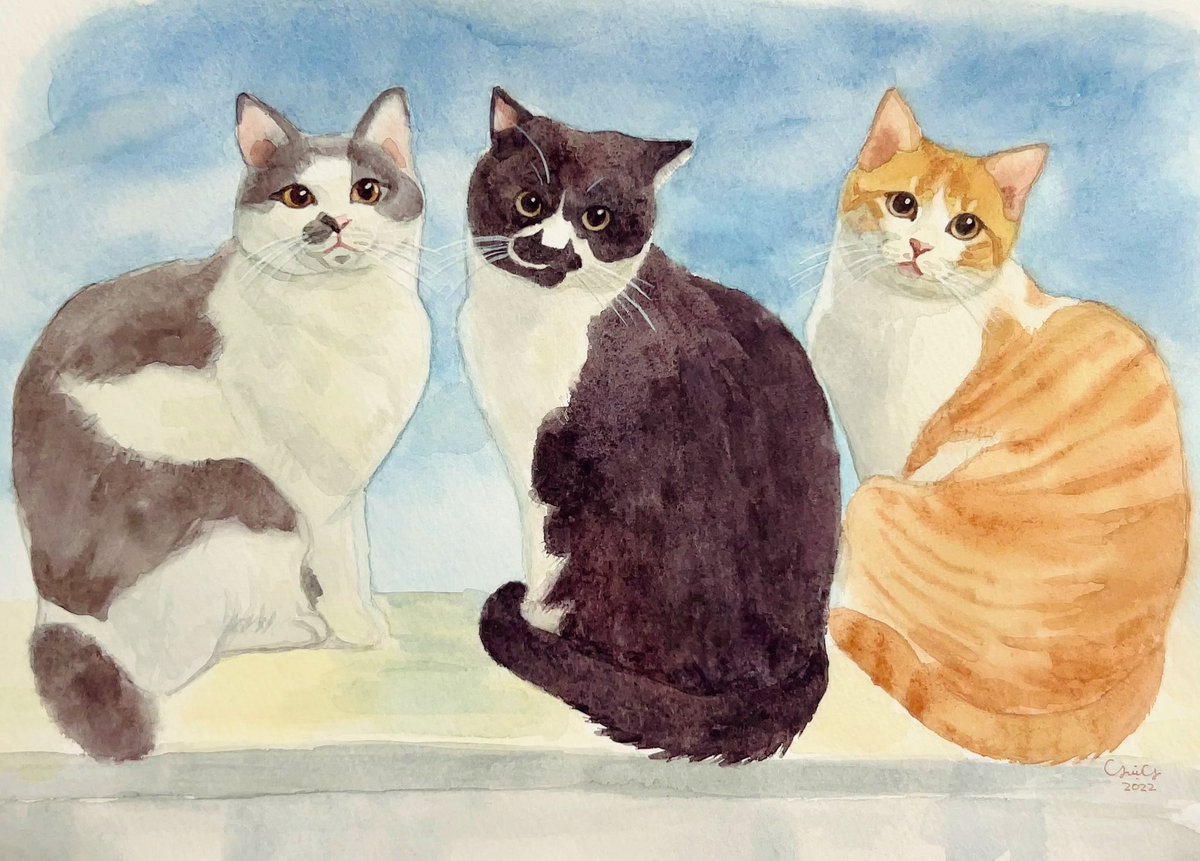 1 0 オーダー作品ฅ^•ω•^ฅ♡ #お絵描き #水彩画 #猫のいる暮らし 23/01/21 16:11