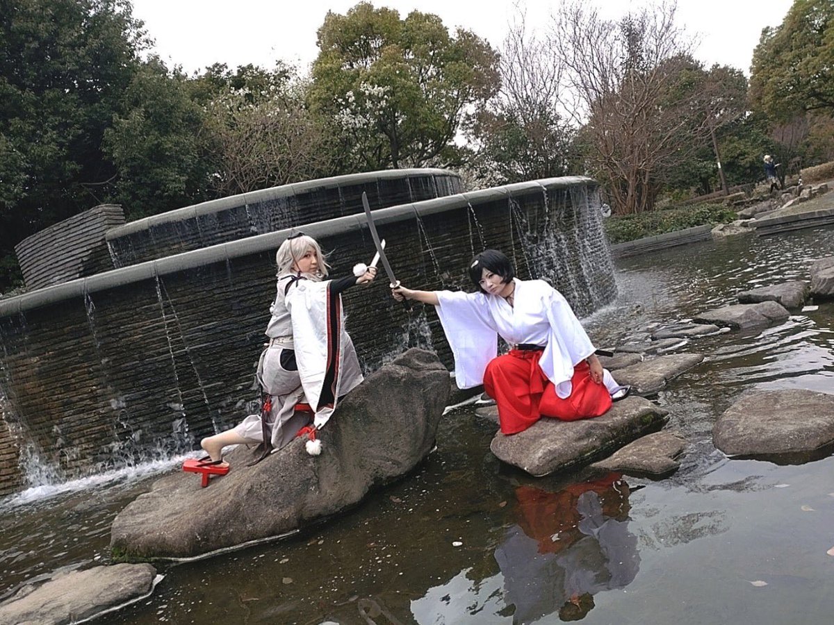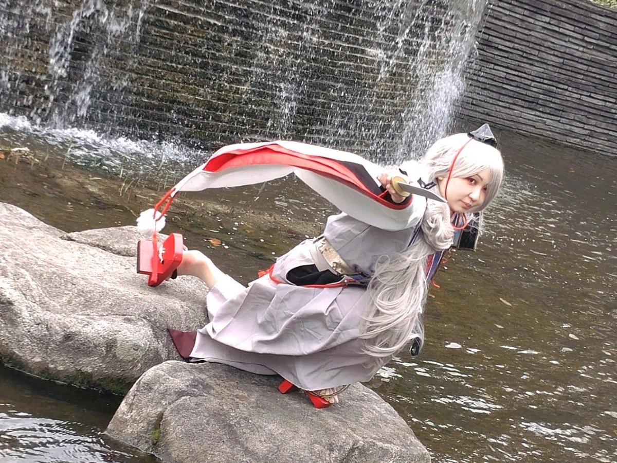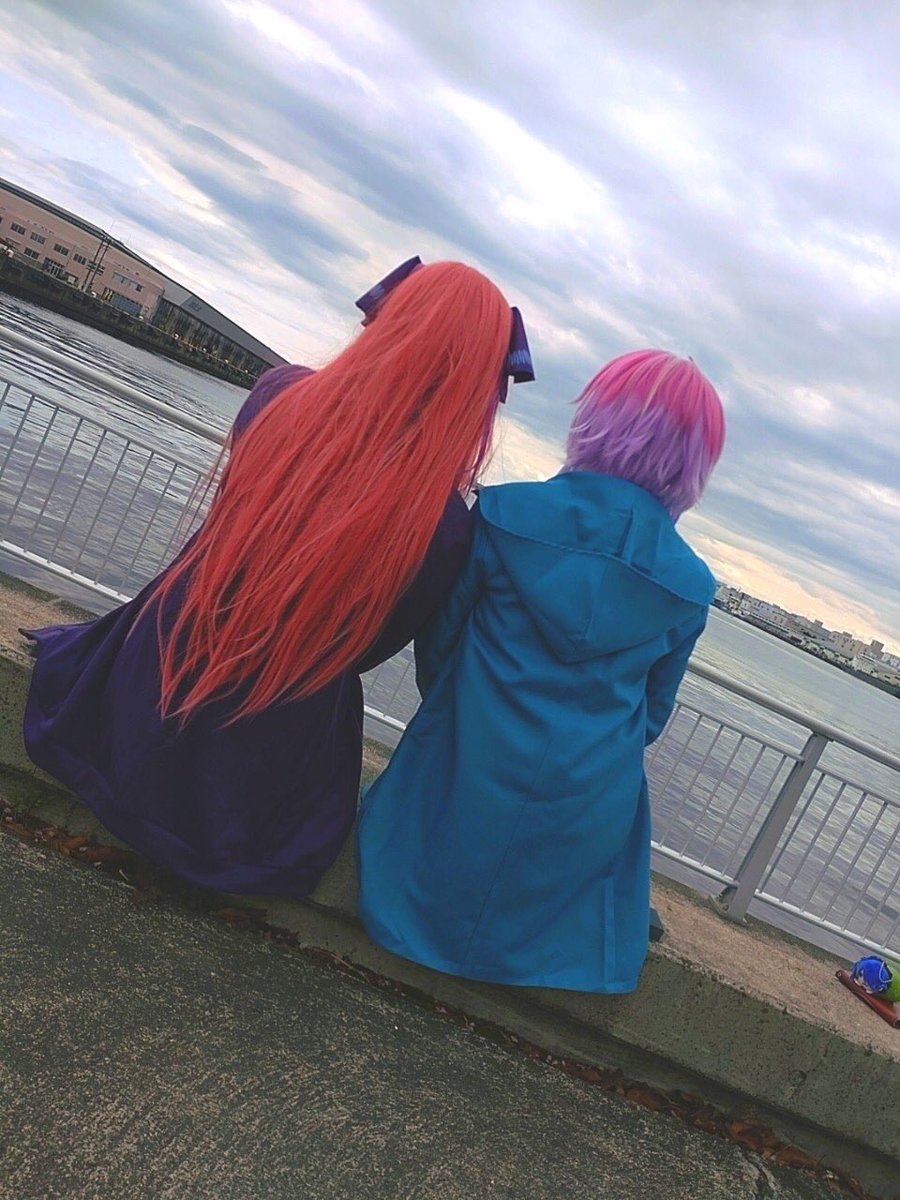 いい大人が全力で遊んだシリーズ いつ水の中に落ちてもおかしくなかったし、足は子鹿のようにプルプルしてた…でもめちゃくちゃ楽しかった…全力で厨二病返りしててすんごい楽しかった ルカ子:@kunatu_anemone #コス博