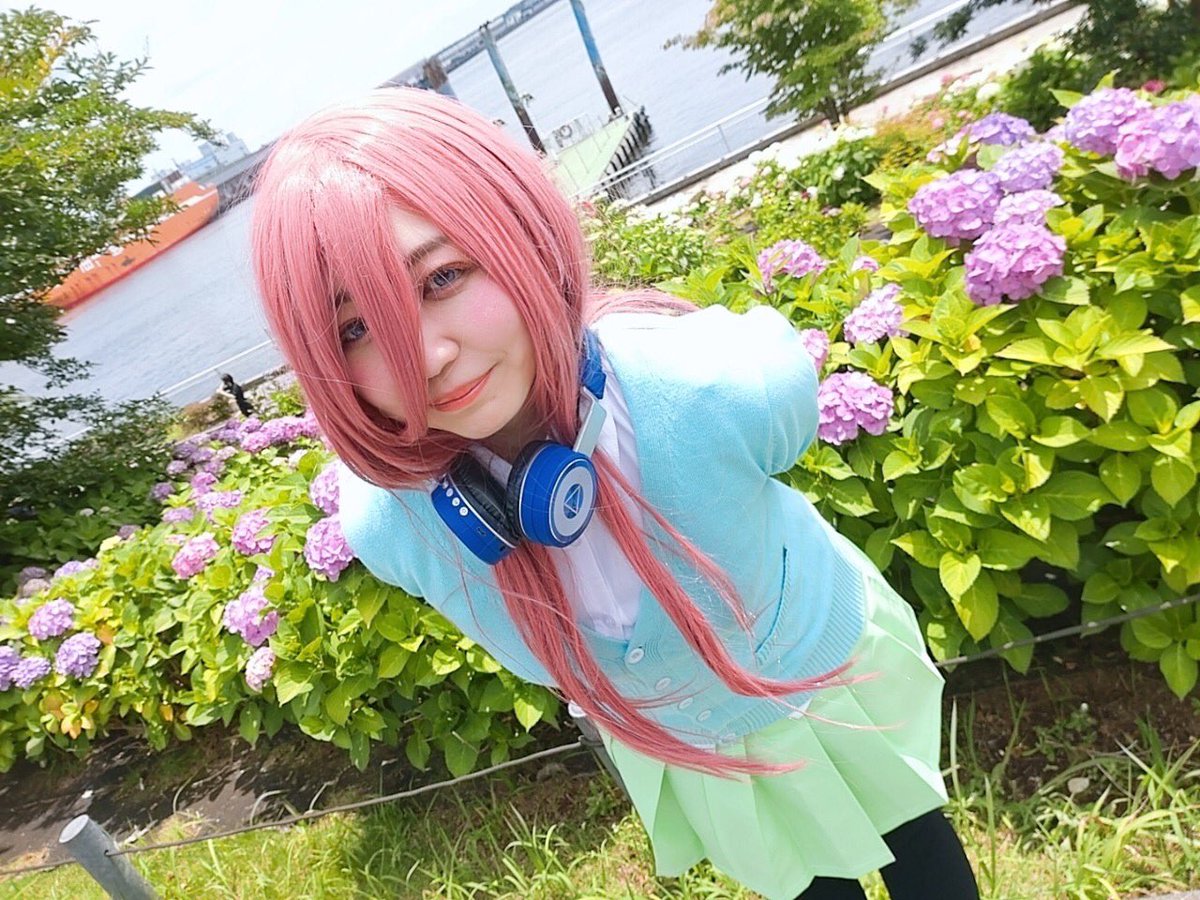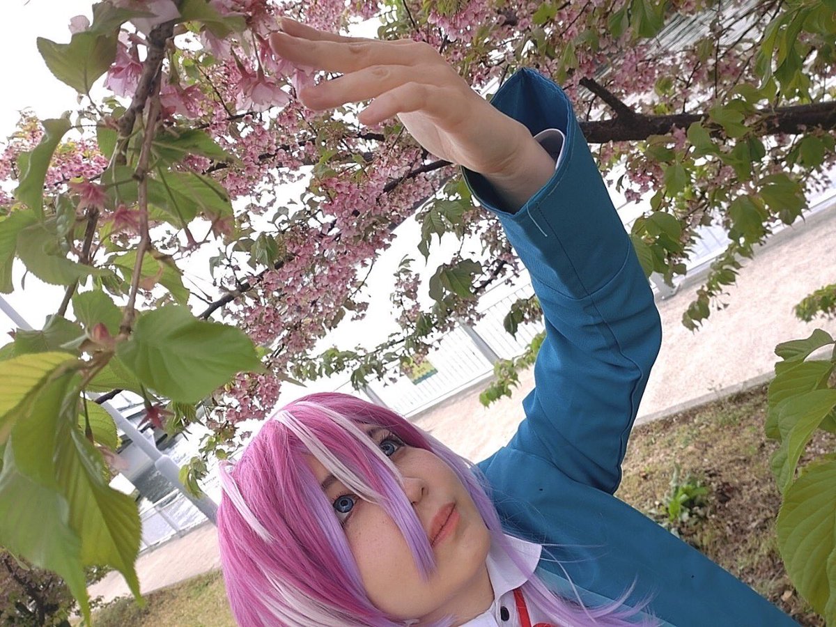 0 2 海と桜、校舎をバックに… ハンドサイン逆になったね!寝ぼけてたから仕方ないね!(言い訳)ダイスの顔隠してるのもウケる。 あまりにも緑緑でようやく見つけたピンクちゃんと一緒に撮ってもらった #コス博 22/03/20 20:40