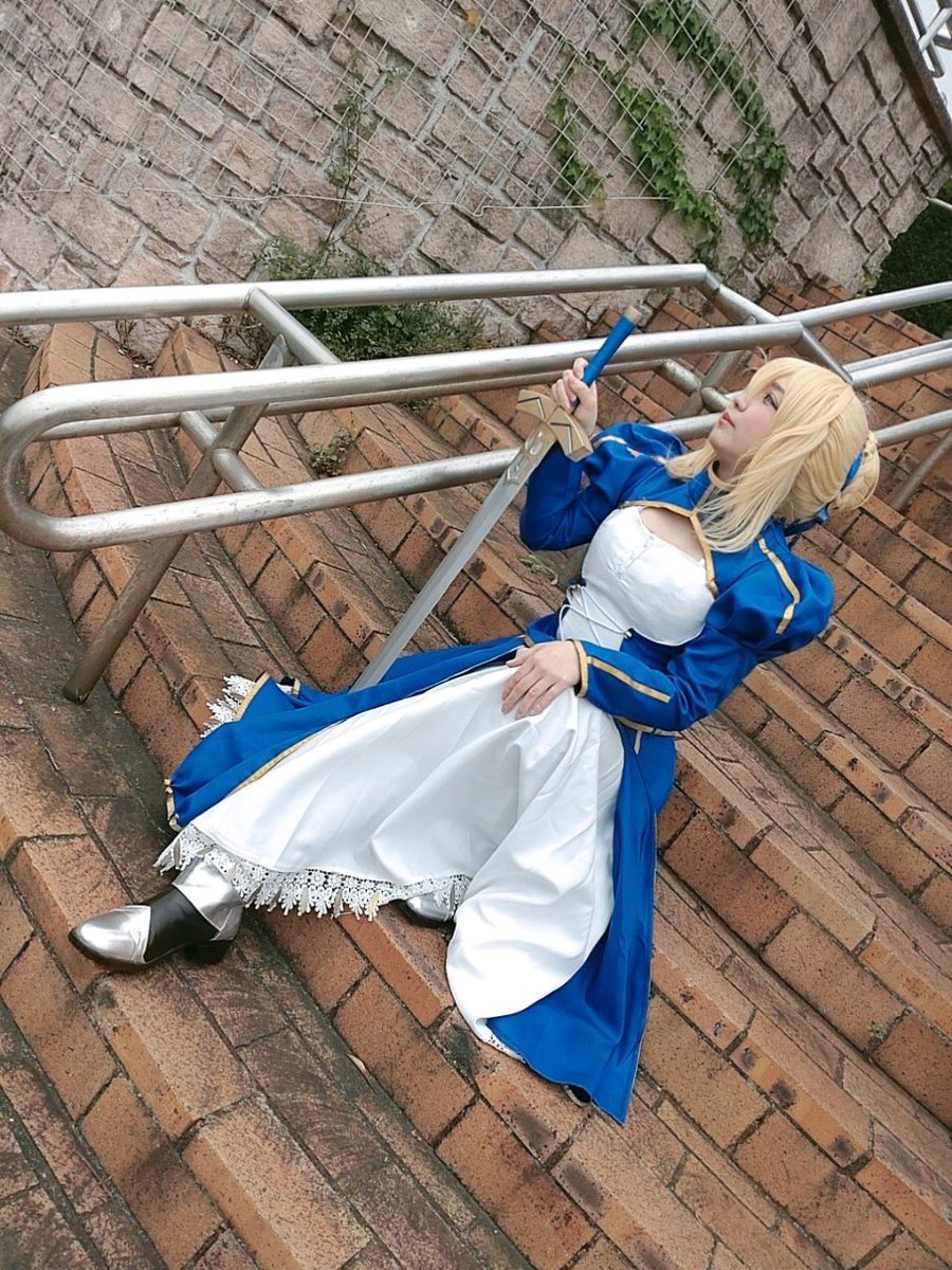 !cosplay! アルトリア/Fate とにかく今日は相棒(エクスカリバー)をずっと肌身離さず、騎士王ごっこしてました!楽しかった!私のアルトリアはえみやさん家とかカニファンよりなので、カッコいいのは花の魔術師と旅に出た別の世界線に任せるわってずっと言ってた。 #コス博 #TFT