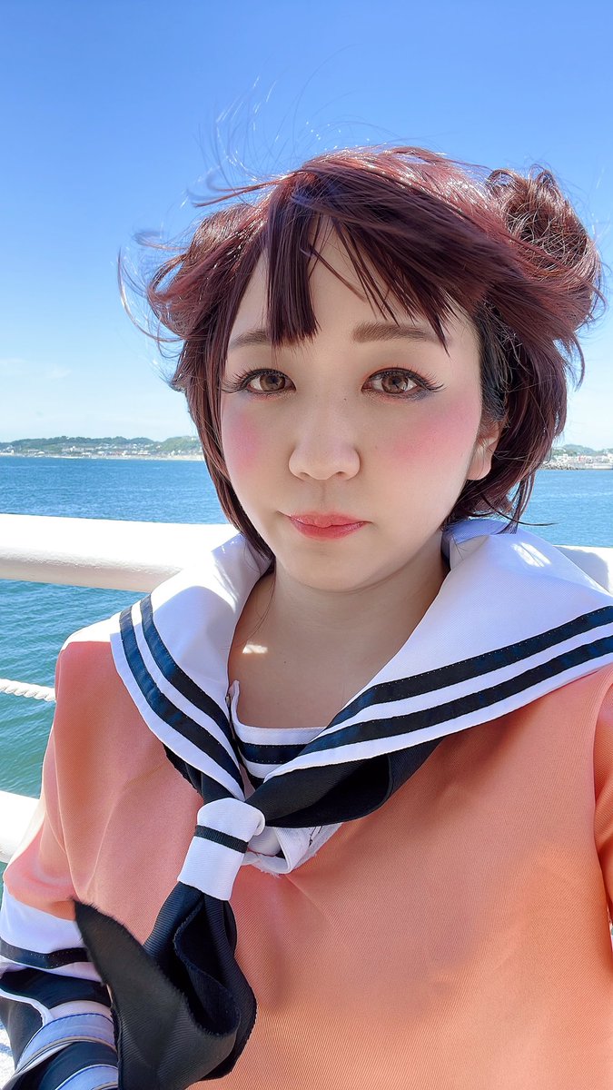 神奈川県産まれの艦隊のアイドルで今日はふらついてます! 風があって気持ちいい✨晴れてよかった!! #江ノ島コスプレ祭