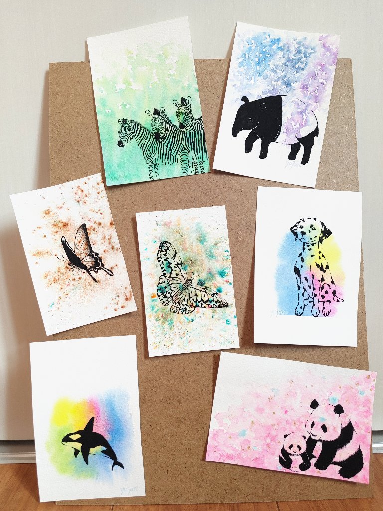 #ハガキサイズに詰め込む私の世界 動物描くのが好きだーーー⤴️ カラフル白黒動物&分離色恐竜シリーズ描いてます🖌️ yujaricolor.base.shop #イラスト #水彩画 #動物イラスト