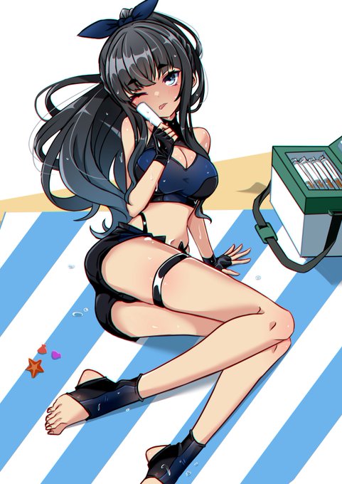 「いっぱい泳いで疲れたな~。そういえばアイス持ってきたんだ。戻って食べようぜ?🍦」 #oc