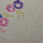 大分 進んだけど、来月までに 咲きそうにないかな😊💧題材 変えようと思ってるけど、どうかな?😅 中々仕上がりそうにないし・・😣 このまま頑張ってみようと思ったりもするけど、もうたいへ~んっ😵💦 #朝顔 #色鉛筆画 #絵描きさんと繋がりたい #絵が上手くなりたい