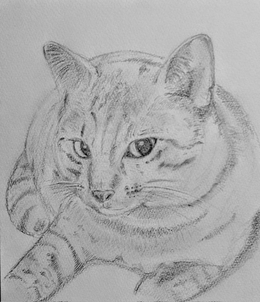 先月から取り組んでいる 猫🐱 (以前 飼っていた、チャトです。) の絵が ほぼ完成しました。やはり模様が難しかったので、また手直しするかもですが、まあ今は これで良いとします🙇 #鉛筆画 #猫 #絵描きさんと繋がりたい #絵が上手くなりたい