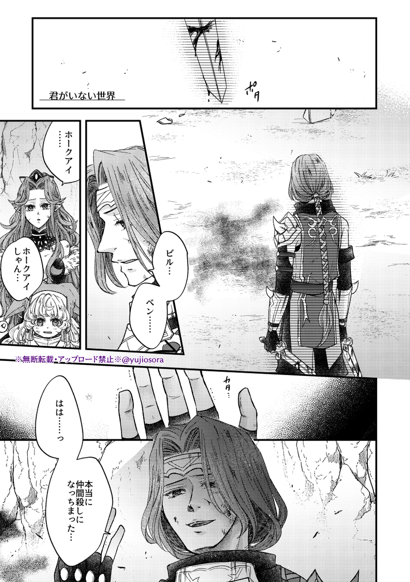 ホアンシャルPTでのビルベン戦後~オアシスの村ディーンの漫画。4P目以降は支部でよろしくどうぞ💁♀️距離感近めだけどCP無しです。 【聖剣3ToM】君がいない世界(ホアンシャルPT) | ユウジ #pixiv pixiv.net/artworks/94590…