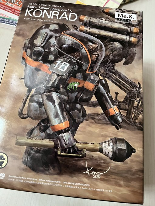 こんばんは^ ^ #マシーネンクリーガー Panzer Kampf Anzug Ausf K #コンラート をGETしましたよ。 #WAVE の1/20 のプラモです。 そんなに大きくない箱ですけど、パーツがギュッと詰まってて心躍りますわ^ ^ #プラモデル #オッサンズモデラー #プラモデル製作