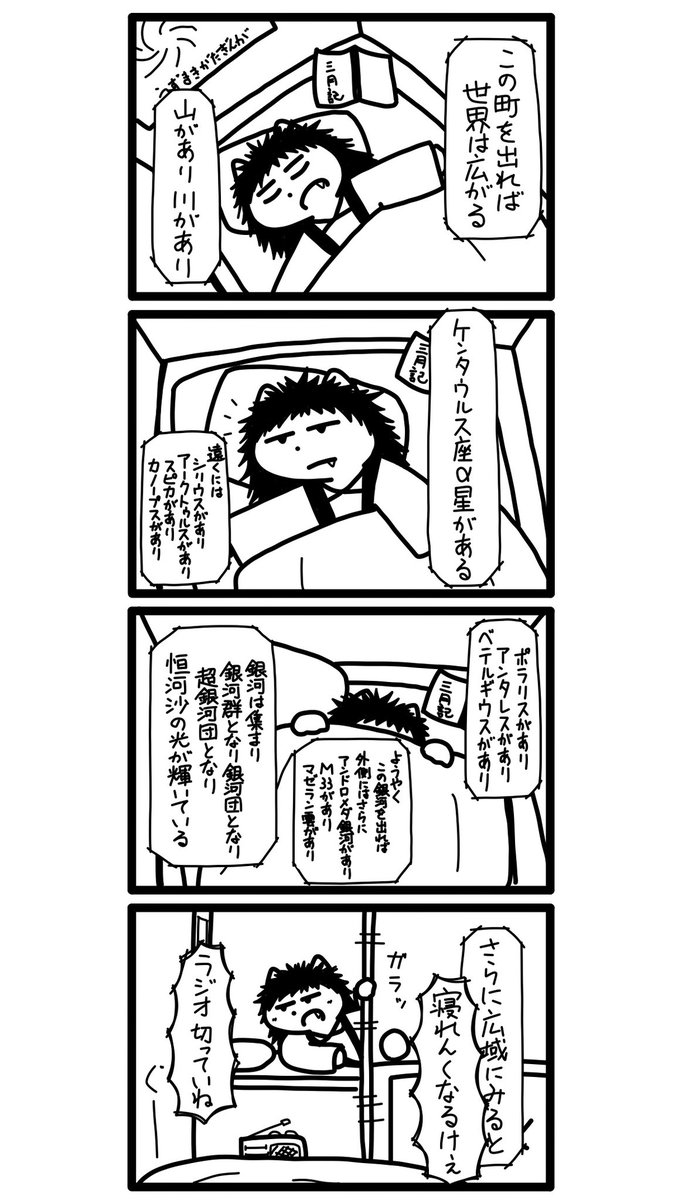 0 1 れーこさんと壮大な夜 #イラスト #4コマ漫画 #創作漫画 #漫画が読めるハッシュタグ 23/03/26 23:58