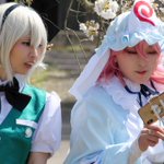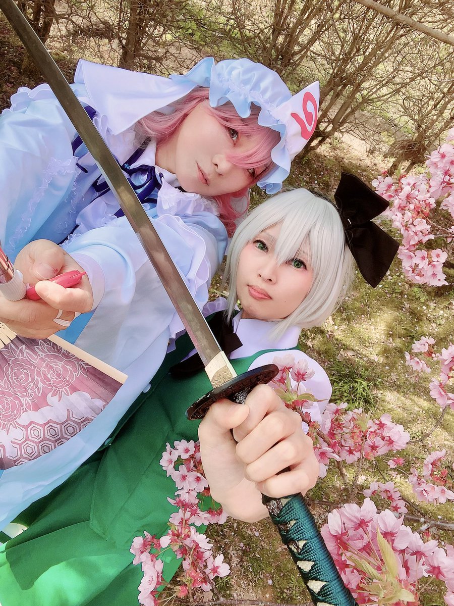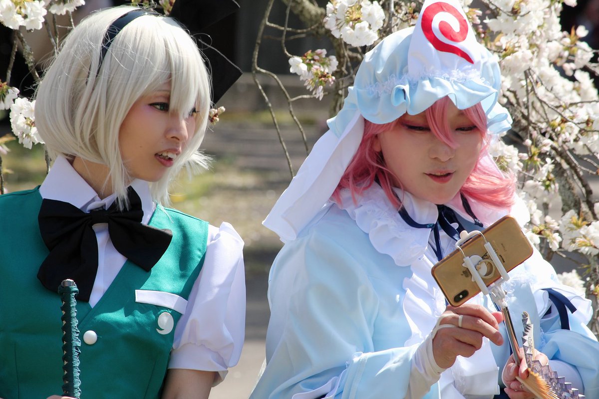#レイヤーさんはコスプレの時のオフショットを晒して下さい コウヤさんが撮ってくださってた1枚目と2枚目。東方M1グランプリ幽々子&妖夢っぽくて好き。 ずっとキャッキャしておる。 巻き込みはにやん(@b_b_honey ) 📸コウヤさん(@kou729 )