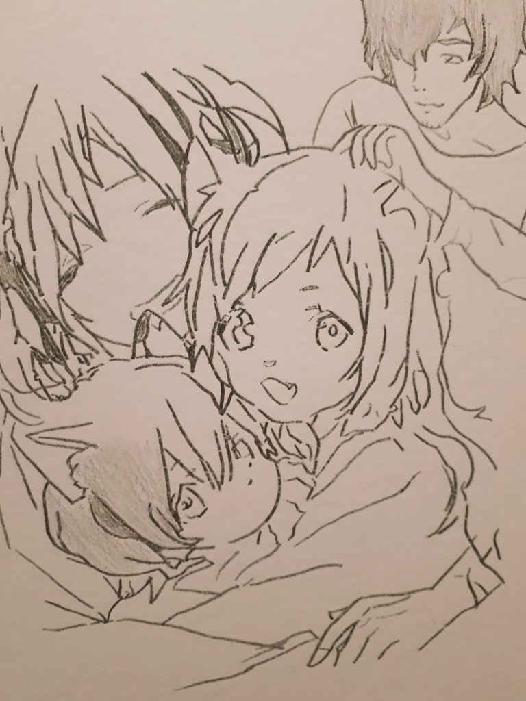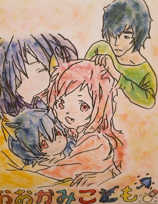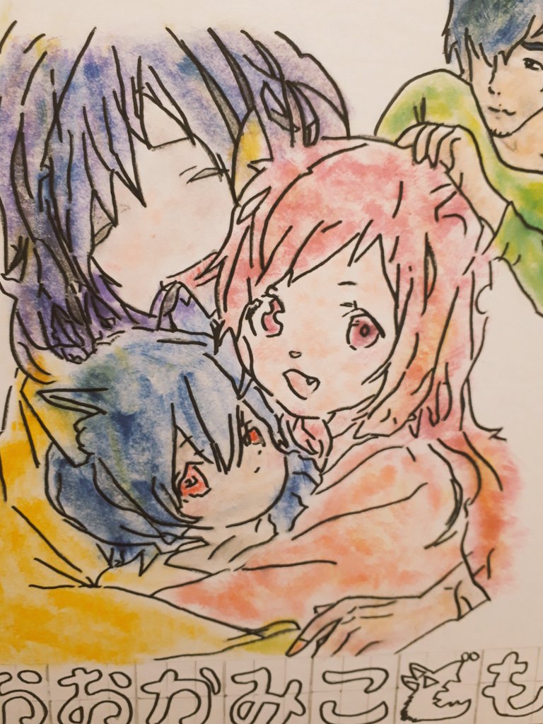#イラスト #下書き #おおかみこどもの雨と雪 進捗状況 (お父さんだけ塗ってないと、👻みたい この後塗ります)