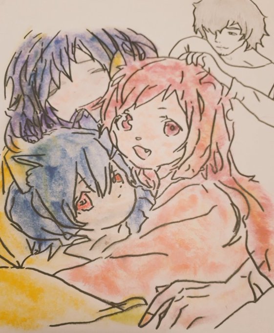2 42 #イラスト #下書き #おおかみこどもの雨と雪 進捗状況 (お父さんだけ塗ってないと、👻みたい この後塗ります) 22/08/14 15:12