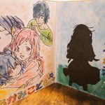 1 28 #イラスト #下書き #おおかみこどもの雨と雪 全体図です(2つ折りの色紙に描いてます) 22/08/19 12:34