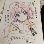 道の駅とよはまで! パープルサンデー食べたい!! って叫んでいたら、久しぶりに色紙描いたです。誕生日当日は行けぬため、明日観音寺でお祝いいたします。 お会いできたらよろしくお願いします! #乃木園子生誕祭2021 #乃木園子生誕祭