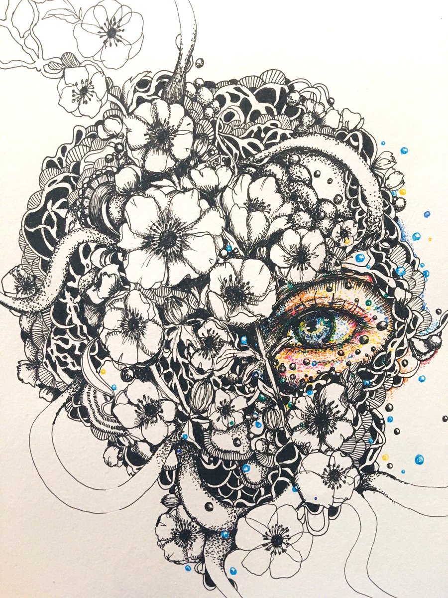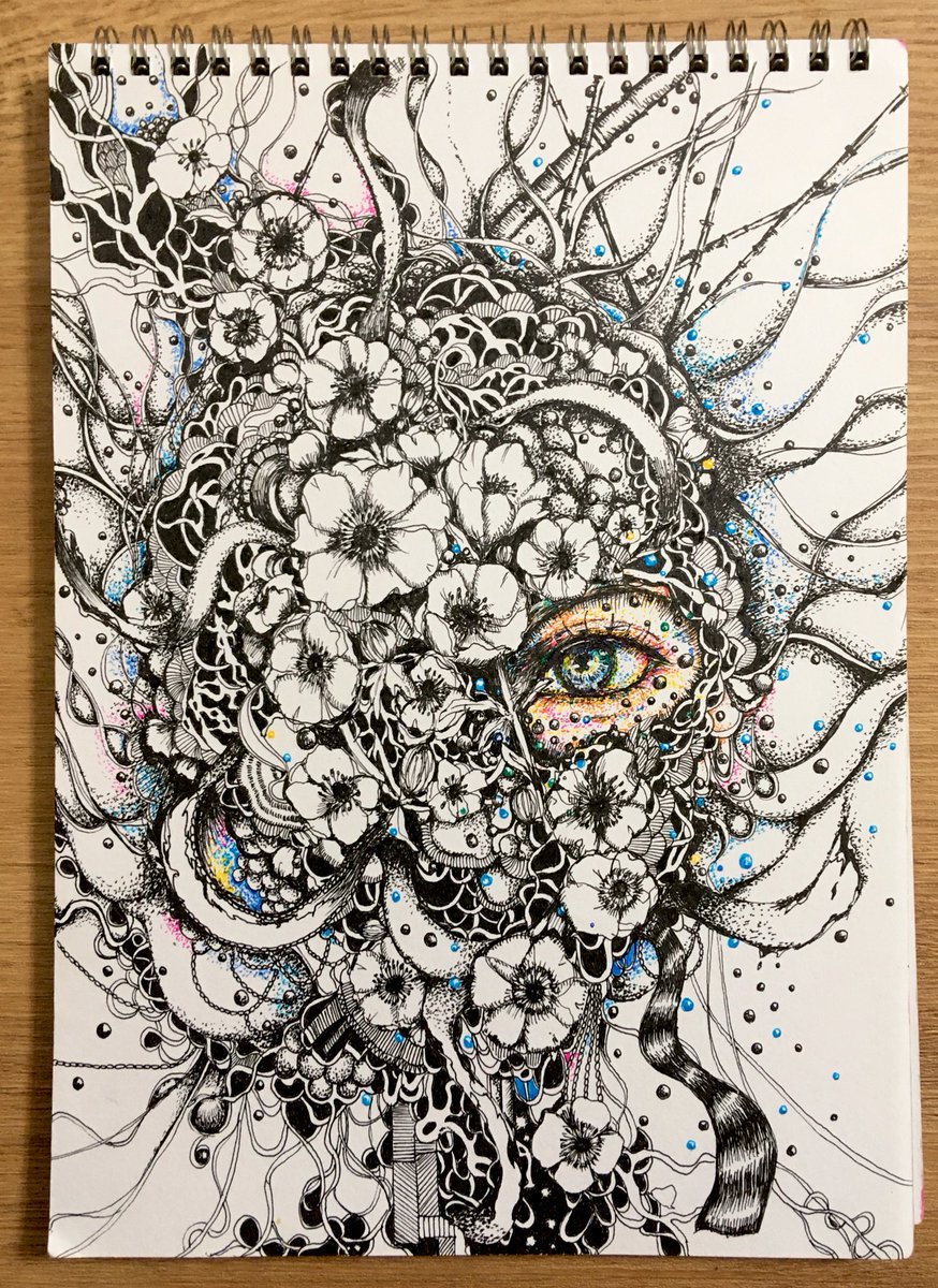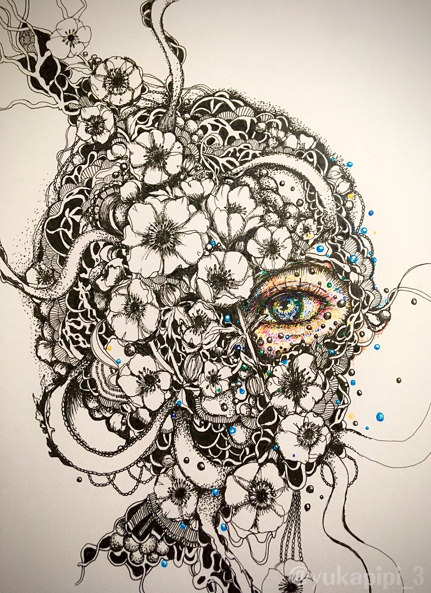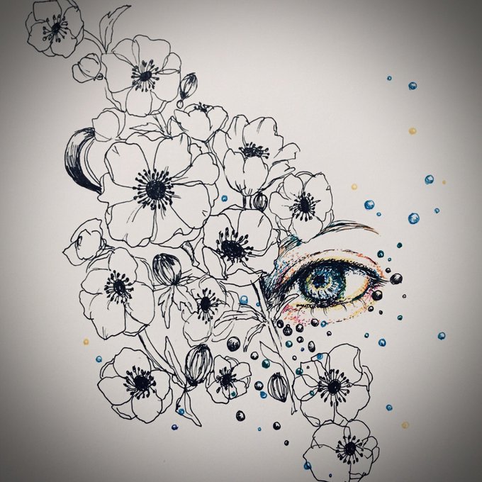 1 36 今日はここまでにしよ。 『真実』 #イラスト #ボールペン画 #ペン画 #絵描きさんと繋がりたい #アネモネ #瞳 22/03/18 23:31