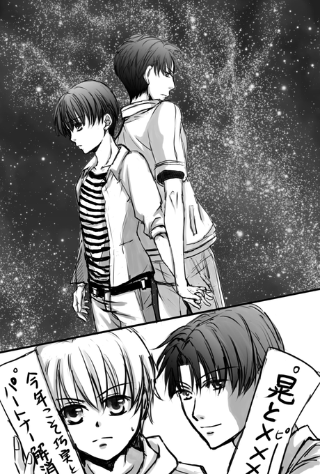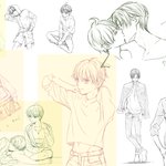 #うちの子の一番古い画像と最近の画像を並べて画力の成長を実感しようキャンペーン ←お絵描き再開し始めた頃。→最近の練習らくがき。 成長してるかどうかはわからないけどなんか古い晃は面白い衣装着てるなwww
