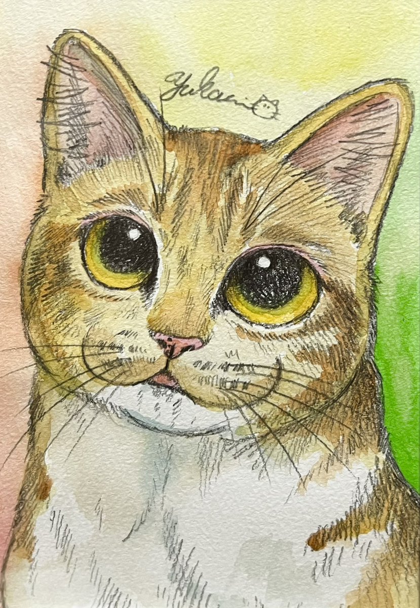 アナログ絵は難しいけど楽しい! #猫 #ねこ #ネコ #絵 #イラスト #イラストレーション #鉛筆画 #透明水彩 #猫好きさんと繋がりたい #猫好きな人と繋がりたい #絵描きさんと繋がりたい #イラスト好きさんと繋がりたい #イラスト好きな人と繋がりたい