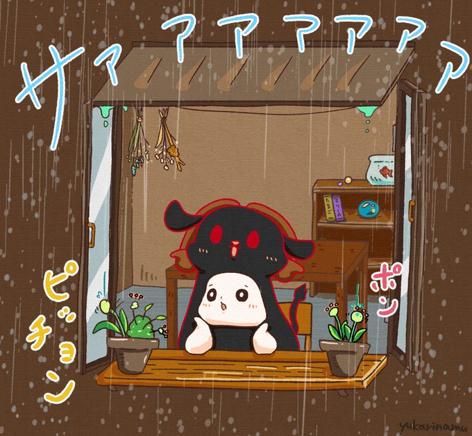 梅雨が来たね! #クロ山羊 #イラスト #illustration