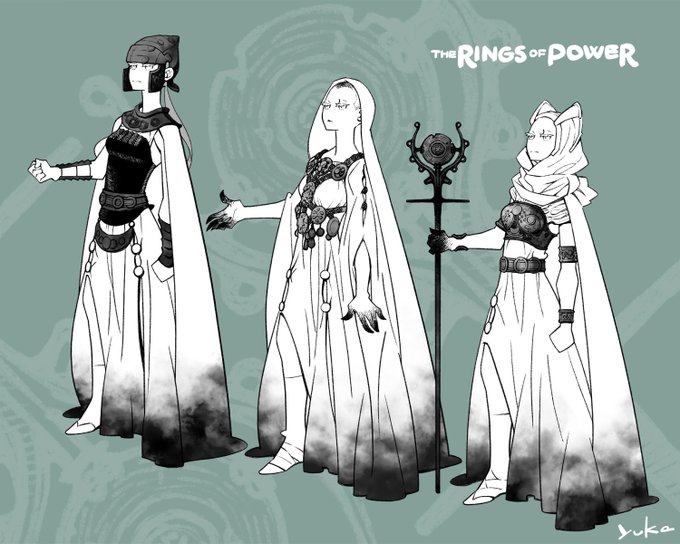 Amazonオリジナル「力の指輪」シーズン1、最終話まで観た楽描き 追跡者って言ーか、3人の使者って言ーか、正式な呼び名は、わからずなんだけれど、この3人組のデザイン、好き! シーズン2、楽しみ! #FanArt #指輪物語 #TheLordoftheRings