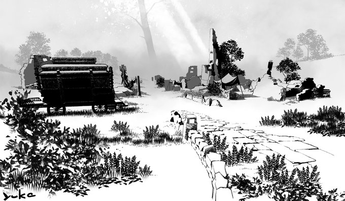そ言えば、気分転換にちょこっとづつ描いてるエルデンリング日記の背景。気分転換にちょこっとづつ描いてるせいで、「この調子で全部描いてたら、終わらんぞ」ってなってる。 日記レベルのものなのに! w #FanArt #ELDENRING
