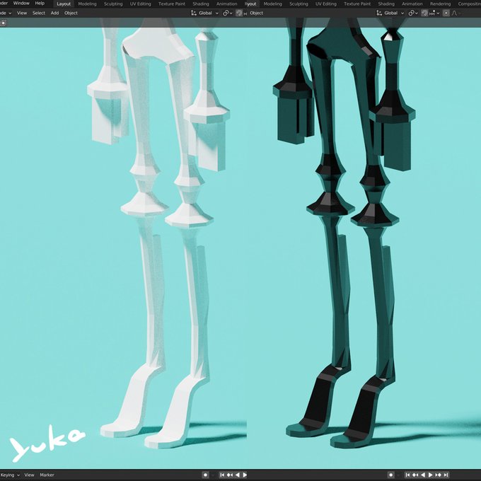 自分で描いた2Dの嘘を、自分でフォローしきれず。 w 想像していたラインは、出せなかった。けど、これはこれで良っかな! 地味モデルだけれど、ごーじゃすにしようと思えば、いくらでもやりようはあるかなと思いつつー #Blender_0vk