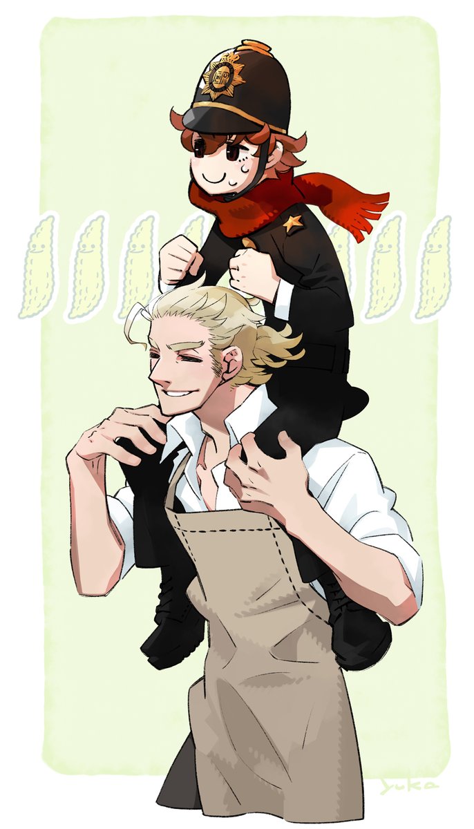 【Skeb】納品させていただきました! ありがとうございます! しぬクトゥルフより 肩車してもらったら、想像以上に高くて、ぎゅってなってるジェイミーと、なんか楽しくなってきたニコラスです。 skeb.jp/@yukasaba #Skeb #Commission