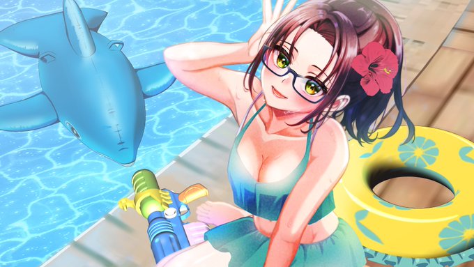 ちひろ様(@chihi22nyan)のエンディングイラストを描かせていただきました☺️ 夏だ!プールだ!水着だ〜!です🌴 よろしくお願いします! #Vtuber #illustration #絵描きさんと繋がりたい