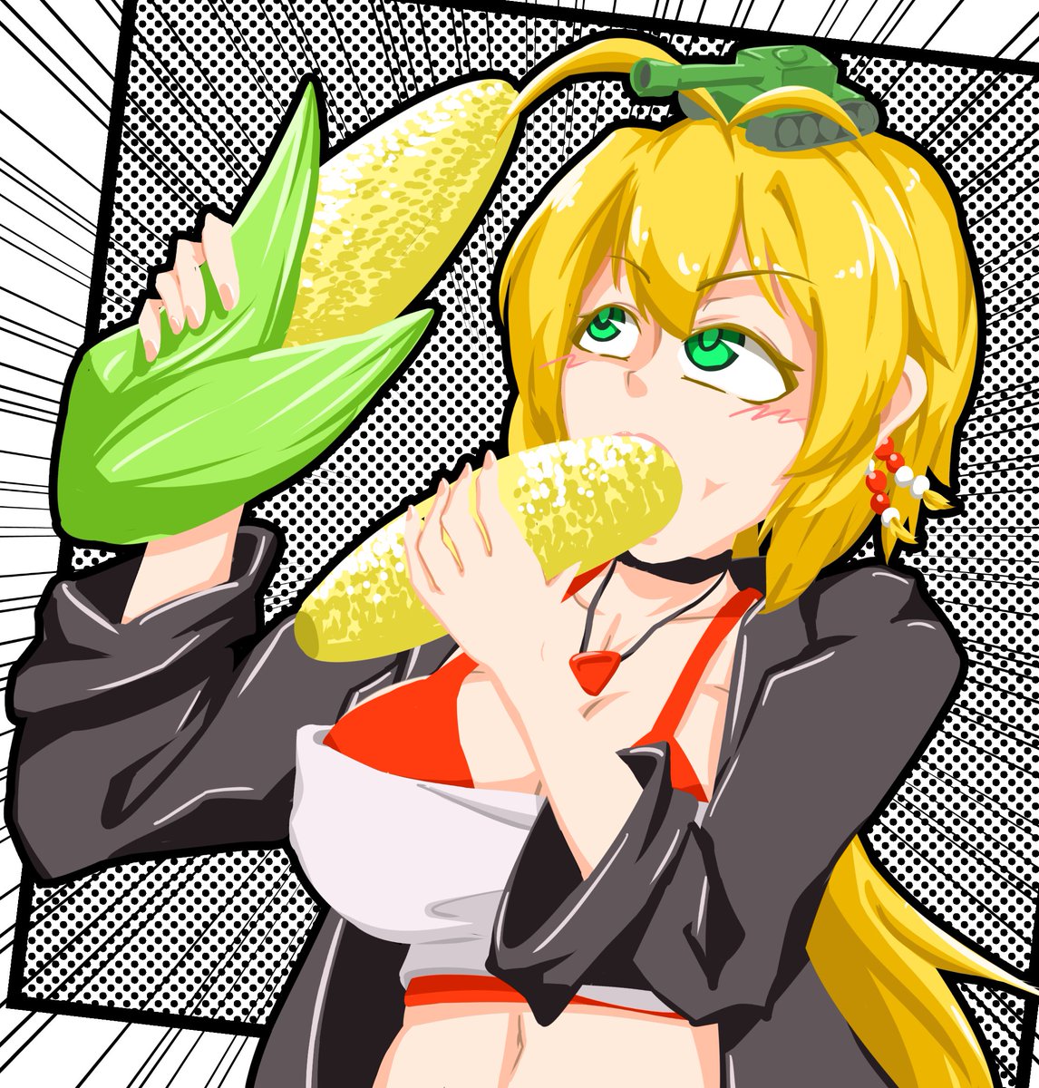 #弦巻マキ深夜の真剣お絵描き60分勝負 #ツルマキマキ お題: プラスチック トウモロコシを食べながらトウモロコシのことを考えているマキマキ!! 名前がマキマキであることを差っ引いても、 プラスチック姉さんの中でもマキマキが一番好き