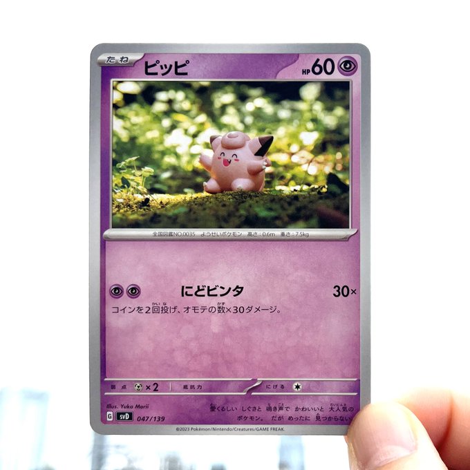 23.7.7に発売のポケモンカードです✨『ピッピ』を焼いて固める樹脂粘土で作りました。😉ポケモンカードゲーム「exスタートデッキ 超 ピクシー」に収録です~ ⭕️私が製作しましたポケモン立体の小さな展示『手からうまれたポケモンたち②』が8月に東京渋谷でご覧いただけます note.com/yukamorii/n/nd…