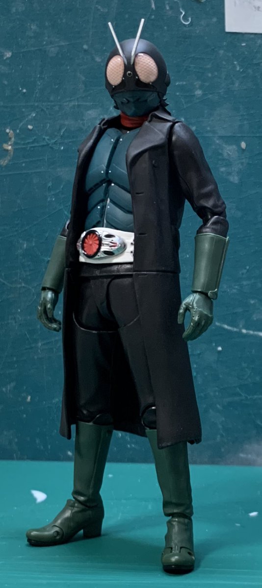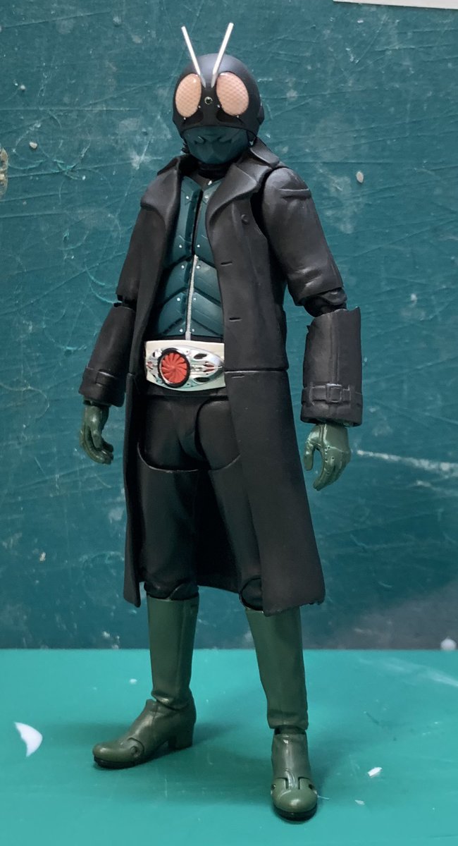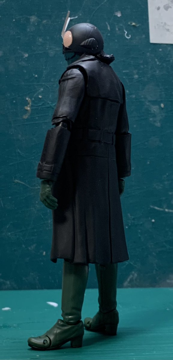 S.H.フィギュアーツ シン・仮面ライダー を改造してコート着用版を制作しました 付属の布製の物があまり好みでは無いのでムビモンのコートをシンナー漬け縮小、アーツと合体させています 折角のアクションフィギュアなのでコートは動きが付いた状態の物と磁石で交換出来るようにしてみました