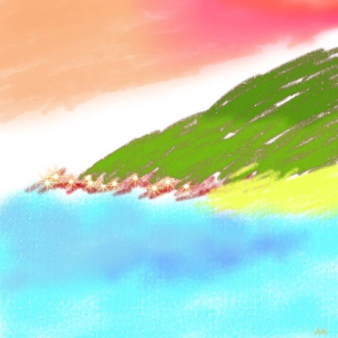 こんばんわ🌃 #イラスト up~~~♪ イラストを見て頂き、ありがとうございます。 ふぁいと💪🥰 #mountain & #ocean #illust
