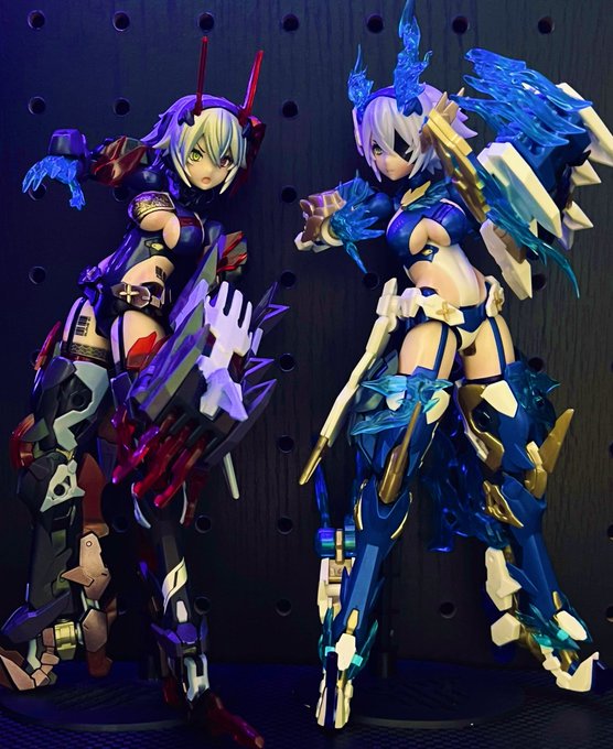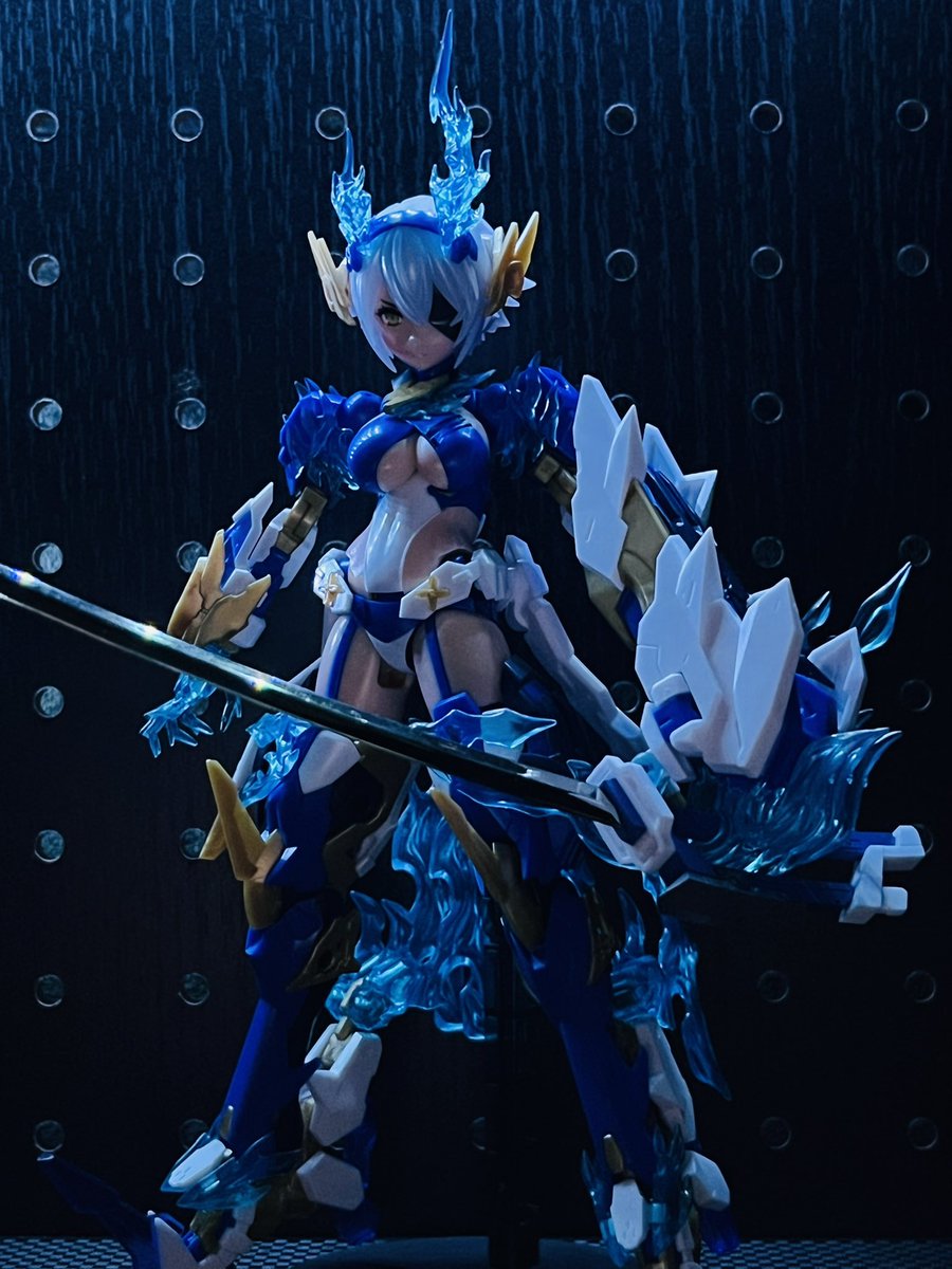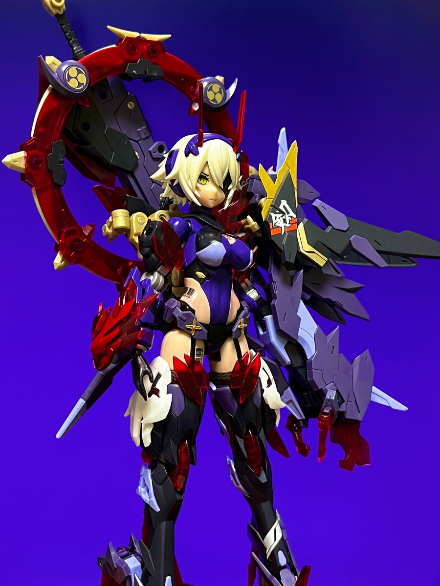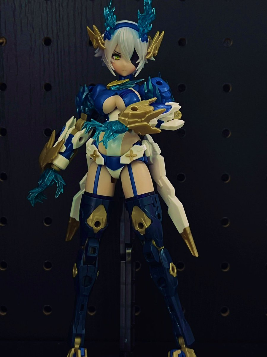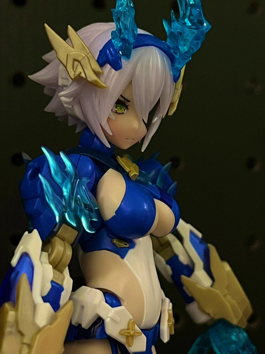 #メガミデバイス #スサノヲ蒼炎 やっぱスサノヲといえばでっかいアームだよね。クリアパーツ光らせながら、顔明るく撮るのむずかしいな。