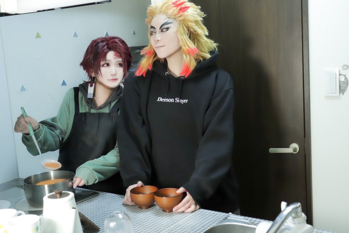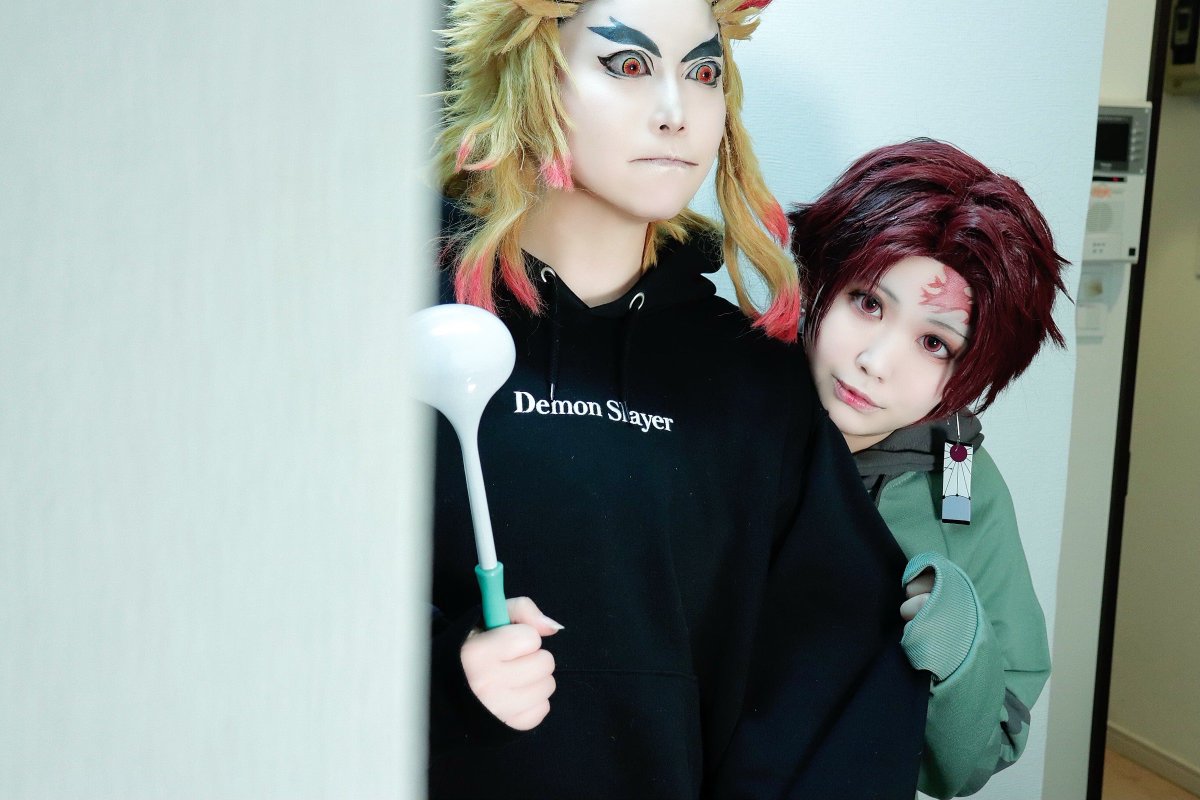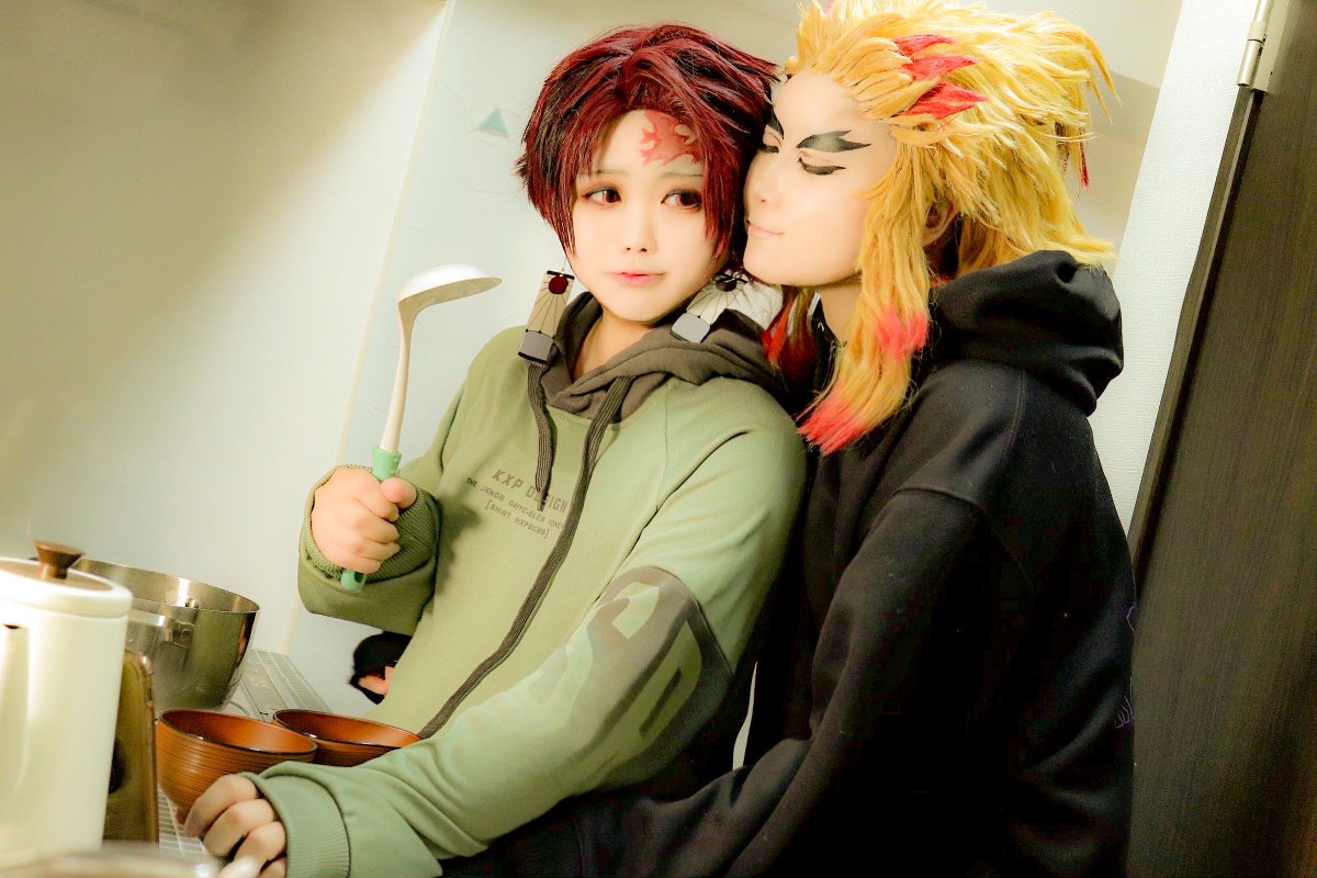 cos/鬼滅/陸童磨 🌈:もうすぐ会えるね❤️ 旅行でバタバタしてて今月もどまフェス遅刻しちゃった🙄💦 ファミチキ陸どまのアニメデビュー楽しみね☺️!!!!!どまくんが!動いちゃう❤️! #どまフェス #毎月24日は童磨の日🌈 ファミチキ🍗@tohka0911 笑
