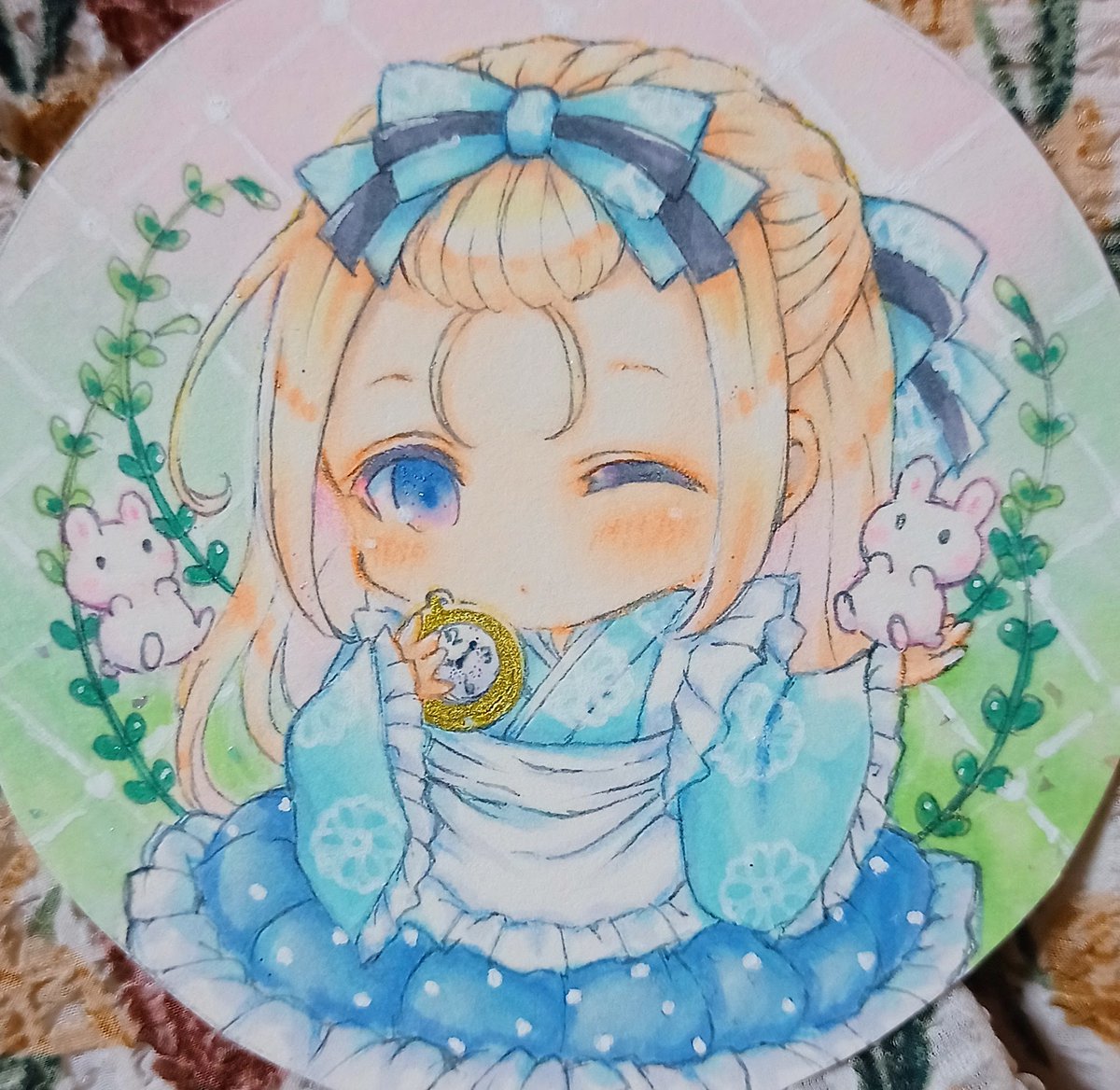 6/24~Gallery glad. (@mk_tenji)様にて #グラッドアリス展2 に参加させていただきます🐇 ラウンド型 和服アリスちゃん🍰 和風とおでこのアリスちゃんを描きたくて描きました✨ お楽しみ頂ければ嬉しいです🐰 #コピック